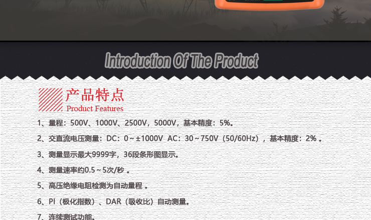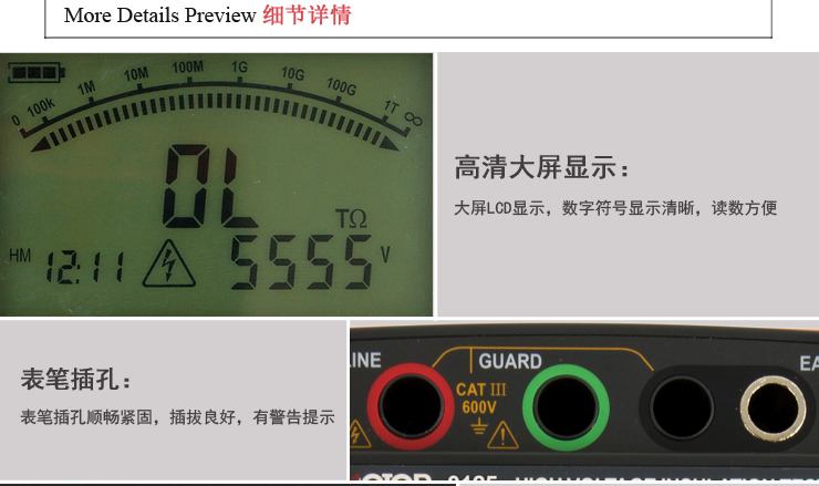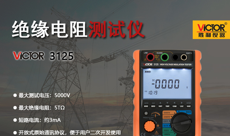VICTOR 3125高壓絕緣電阻測試儀適用于現場電力設備以及供電線路的測量和檢修。