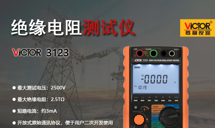 VICTOR 3123高壓絕緣電阻測試儀適用于現場電力設備以及供電線路的測量和檢修。
