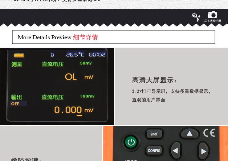 30mA | 0.000~33.000mA | 1μA | 0.01+0.01 |