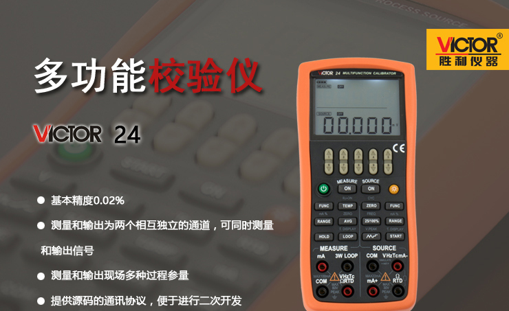 VICTOR 24多功能過程校驗儀具有高精度測量和輸出現場所需的各種過程參量,適用于現場溫度變送器、DCS、PLC等系統的調試和校準,并在石油化工、生物制藥、工業自動化、大專院校和科研機構等領域的得到了廣泛的應用。