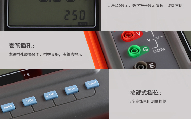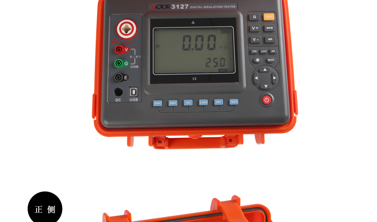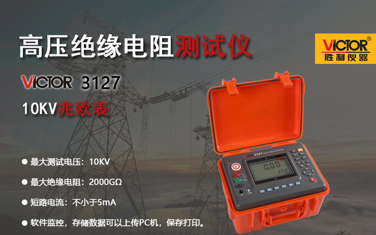 VICTOR 3127 高壓絕緣電阻測試儀包含6個電壓等級:250V、500V、1000V、2500V、5000V、10KV。最大2000GΩ絕緣電阻測試。直流電壓測量范圍0~1000V,交流電壓測量范圍0~750V。具有USB接口,軟件監控,存儲數據可以上傳PC機,保存打印。