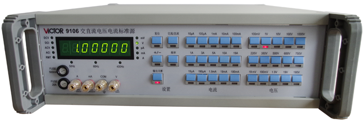 VICTOR 9106多功能標準源是一種多功能、高精度、高穩(wěn)定度的標準源。采用數(shù)字式信號合成技術(shù)和先進的穩(wěn)幅、功放、保護新技術(shù),使其穩(wěn)定性好、精度高、安全可靠。適用于各種五位數(shù)字以下的數(shù)字電壓表、電流表、手持式多用表、臺式多用表、數(shù)字面板表等儀器儀表的檢驗和校準。