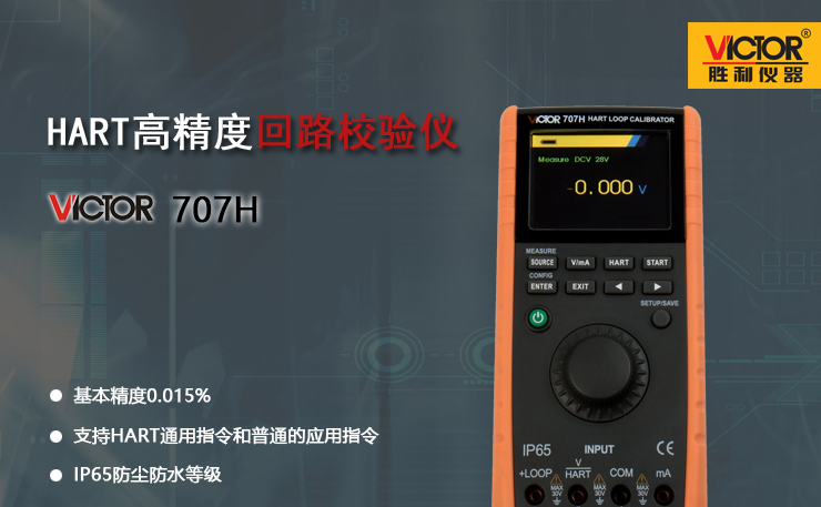 VICTOR 707H HART高精度回路校驗儀是一款高精度回路校驗儀,本儀表內(nèi)置有HART調(diào)制解調(diào)器,可實現(xiàn)HART基礎(chǔ)指令。