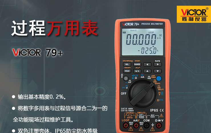 VICTOR 79+ 過程萬用表是一款將數字萬用表與過程信號源合二為一的工業級現場過程維護工具。該過程萬用表在石油化工、生物制藥、工業自動化、大專院校和科研機構等領域的得到了廣泛的應用。