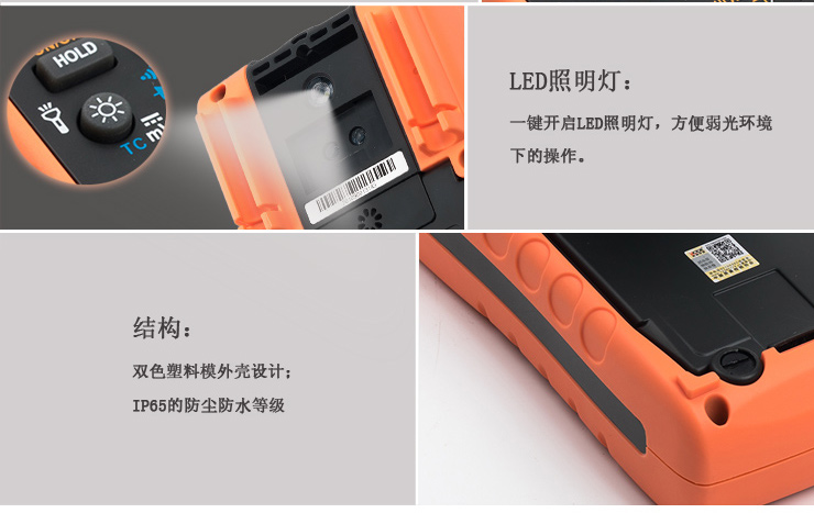 2. 雙色塑料模外殼設計和符合IP65防塵防水等級,可在惡劣的環境中使用。