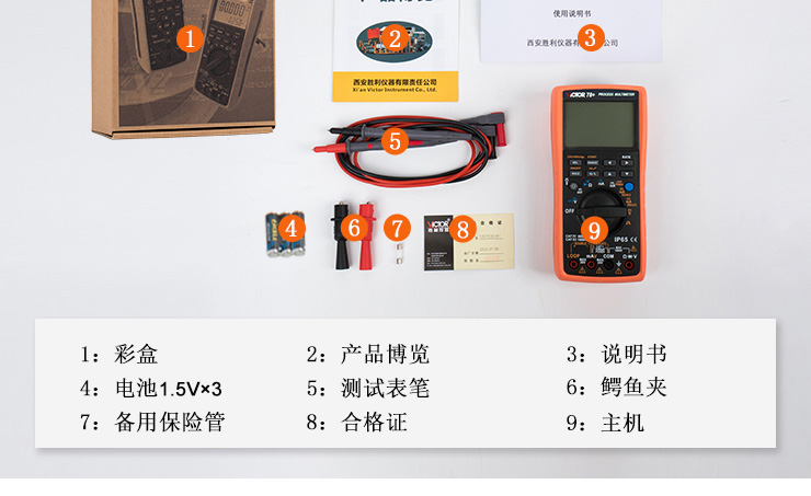 * 測量功能:交流電壓、直流電壓、電阻、直流電流、交流電流、通斷、二極管、頻率、熱電偶、熱電阻。