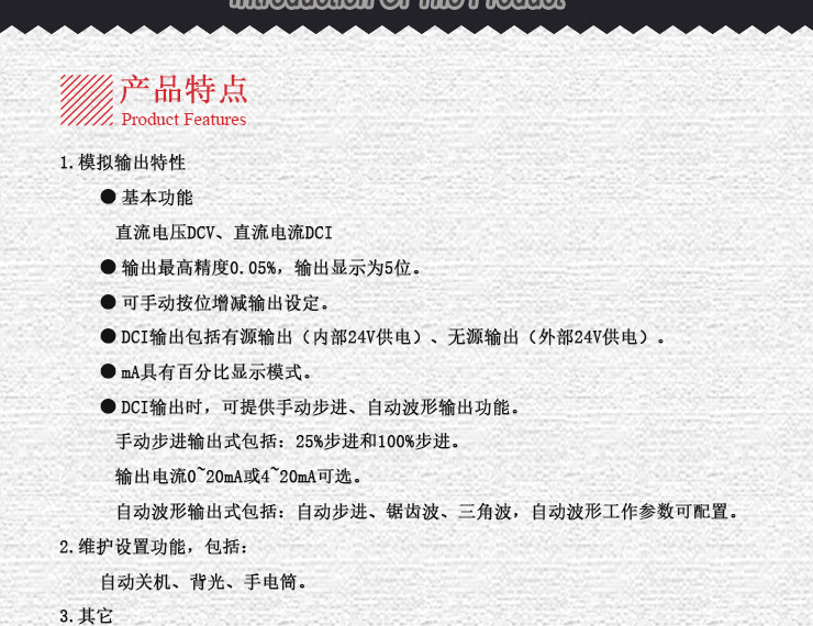 自動波形輸出式包括:自動步進、鋸齒波、三角波,自動波形工作參數可配置。