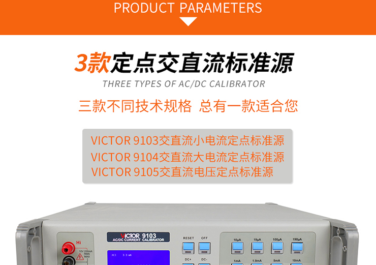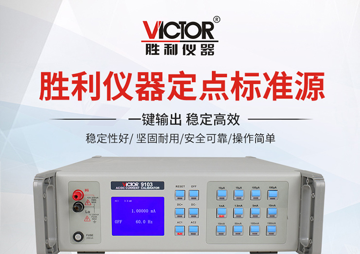 VICTOR 9103交直流小電流定點標準源,實現交流和直流的低范圍電流標準信號,用于定值激勵檢測的應用,定點操作,一鍵輸出,迅速穩定,適合生產線工位使用,操作簡單提高生產效率。